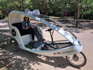 Nuestros vehículos son triciclos de pedaleo asistido que pueden transportar a dos pasajeros adultos de manera confortable, son ligeros, cómodos, silenciosos y son la mejor manera de descubrir, o disfrutar de nuestra ciudad de forma sostenible
